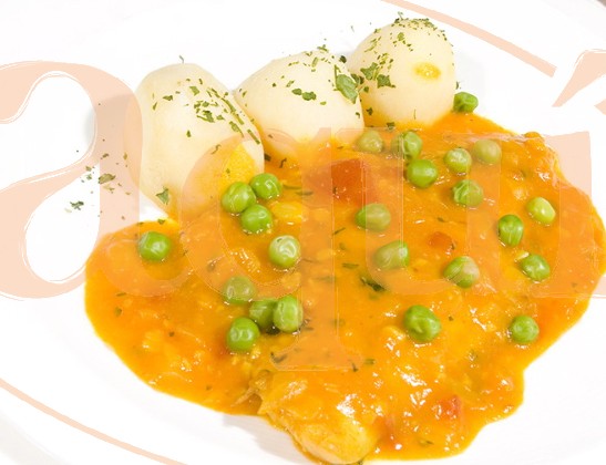 - Preparar unha salsa mariñeira: refogar en aceite o allo e a cebola picados, engadir un pouco de fariña e caldo de peixe, lixeiramente coloreado, engadir a salsa de tomate e perexil picado deixando cocer uns minutos. Separadamente, marcar o lombo limpo de dourada na prancha e colocar nunha fonte de forno, cóbrese coa salsa e fornear 10 min. a 180ºC. Acompañar dunhas patacas cocidas e chícharos cocidos á parte tamén.