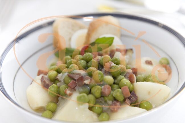 Patacas con chícharos en salsa verde