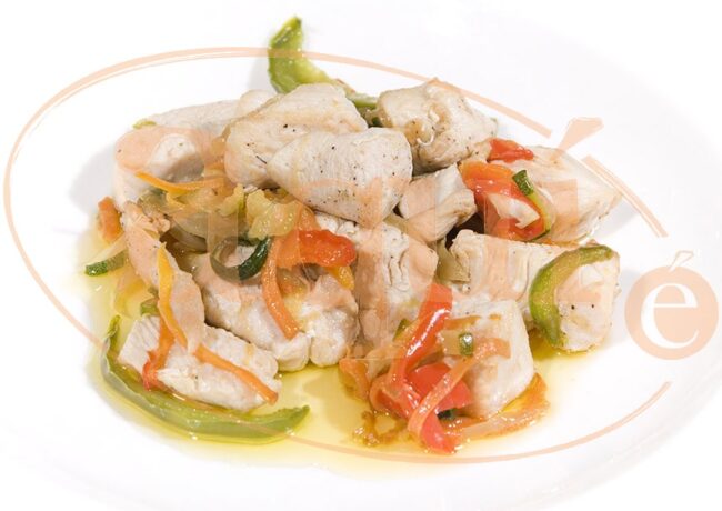 Pavo refogado con verduras
