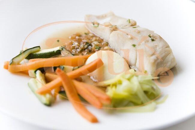 Filete de perca ao vapor con verduras