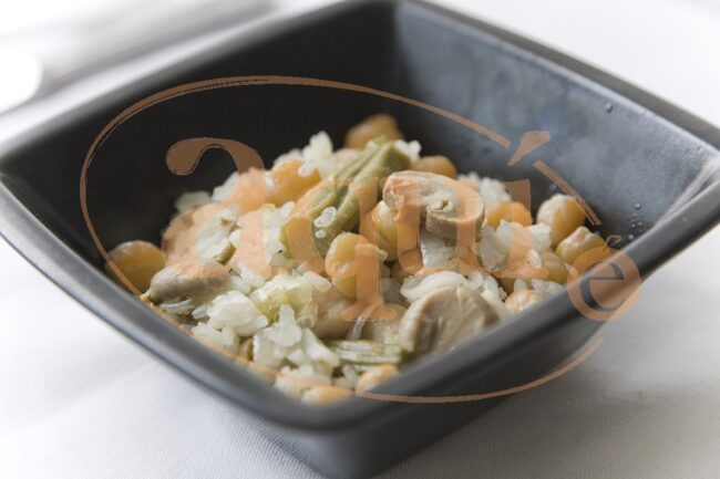 Ensalada de garavanzos e arroz con espárragos trigueros