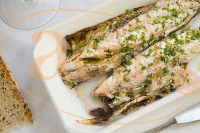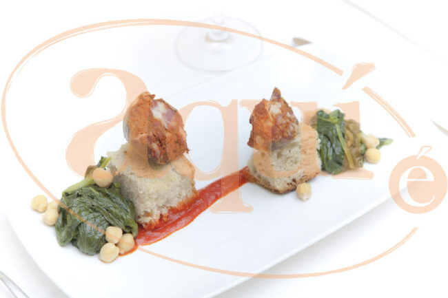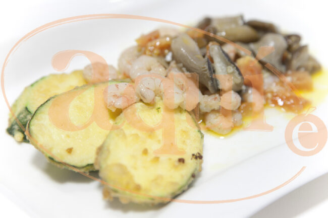 Cabaciña con gambas á salsa vinagreta de cogomelos