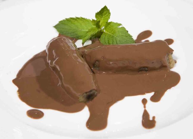 Plátano flambeado con chocolate