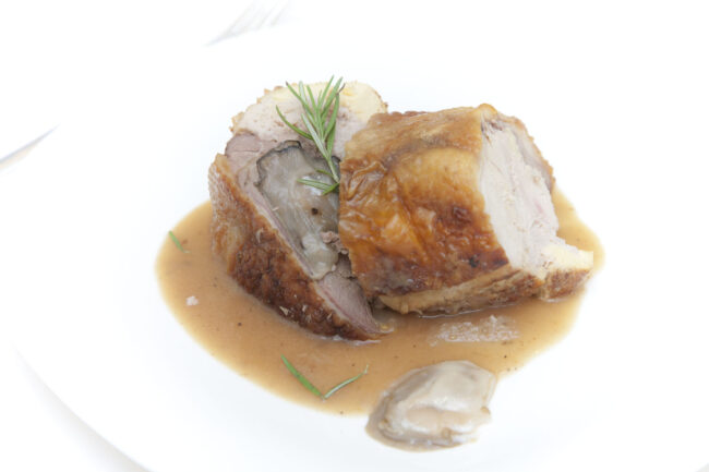 Capón con ostras