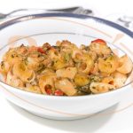 Pasta con bacalao al "ajoarriero" y espinacas